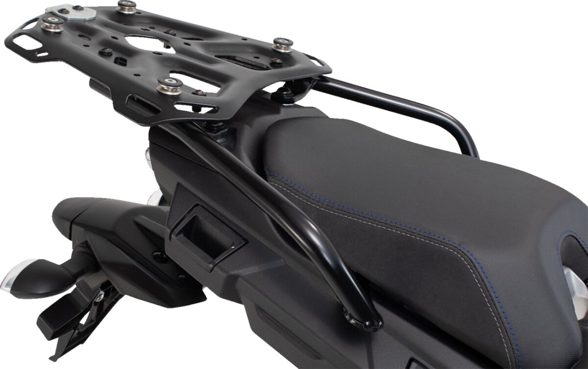 Style : Top Case Colour/Finish : Black| Powder-Coated Units : Each Base Colour : Black Base Finish : Powder-Coated Product Name : Luggage Rack Features : Includes Mounting Hardware Material : Aluminium Model : Adventure-Rack