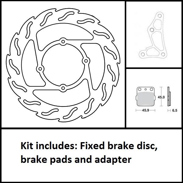 Kits contains:260 mm Oversize Rotor, Caliper Relocation Adapter and one set of racing compound front brake pads