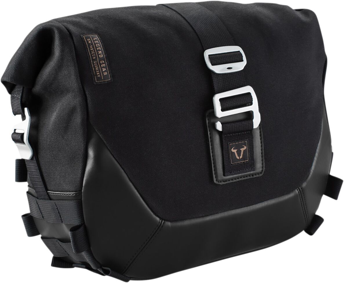 Durable Napalon synthetic leather and waxed canvas fabric underline the elaborate vintage design of the Legend Gear soft luggage. The LC1/LC2 side bags are available in black-brown or a solid black version.